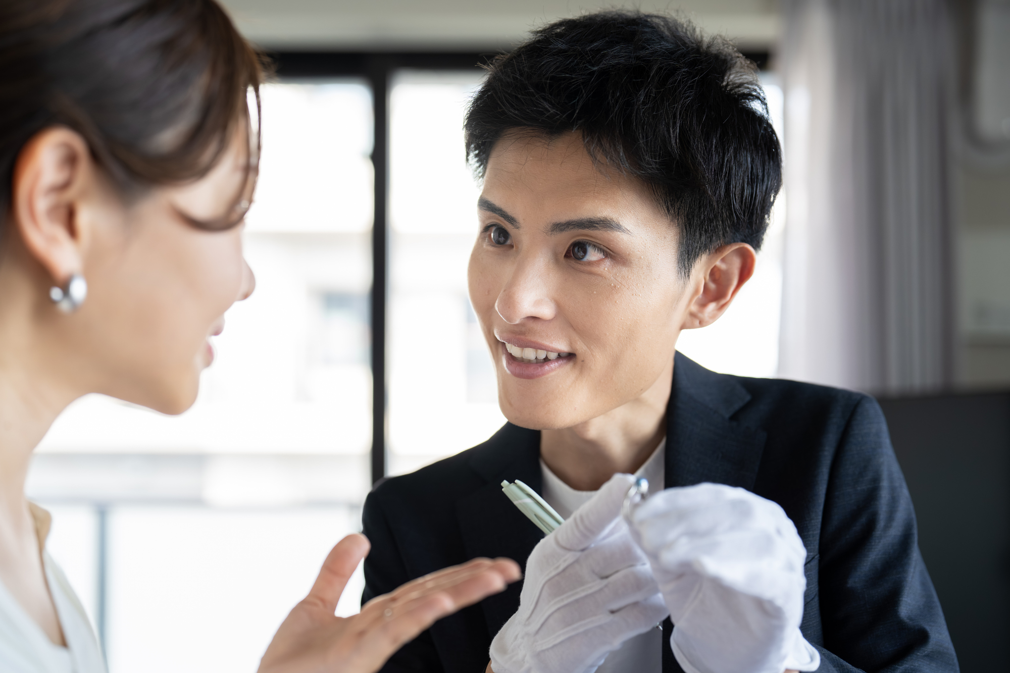 近年、貴金属の買取業者で悪質な業者が増えています。本社は古物商許可証を保有しております。また徹底した接客サービスと査定の技術を有した査定員が伺います。